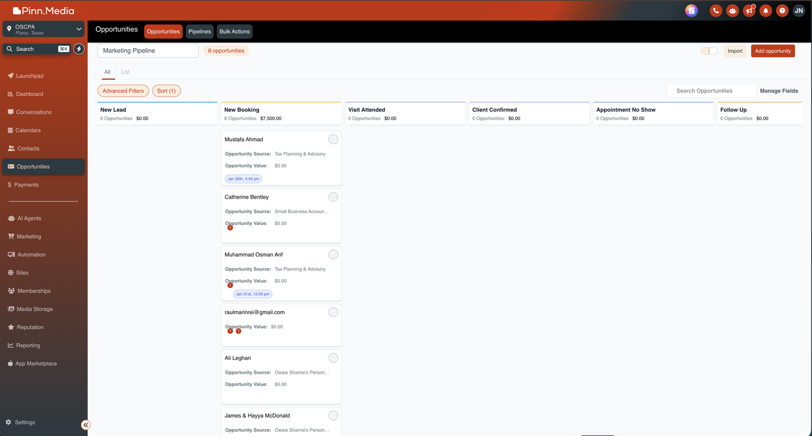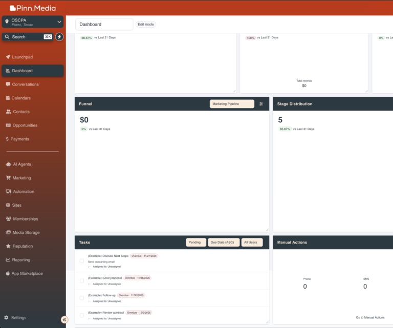 Pinn Media CRM is an all-in-one platform that helps you manage clients, automate workflows, handle bookings, run marketing campaigns, build funnels, and more, everything in one dashboard to save time and increase revenue.